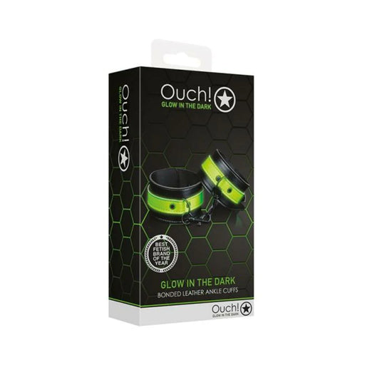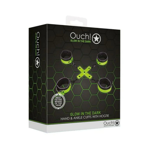 Ouch! Glow Hand & Ankle Cuffs With Hogtie - Glow In The Dark - Green
