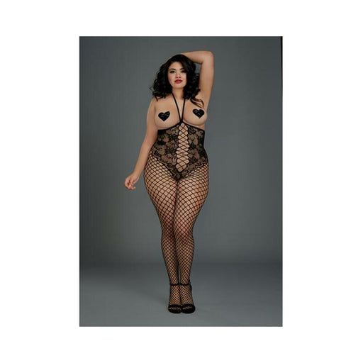 View full detailsSeamless fishnet open-crotch bodystocking with halter neck and low back (thong not included). Size OS: Size 2-14, Cup B/C, Weight 90-160 lbs., Bust...