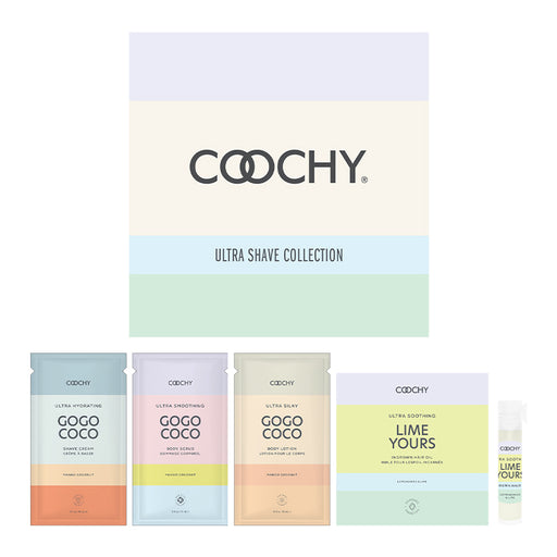 View full detailsThe Coochy Ultra Promo Pack COO8300-21 contains 1 of each: 1 x COO6001-05 Coochy Ultra Hydrating Shave Cream .35 fl. oz./ 10 ml FOIL 1 x COO7001-05...