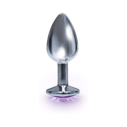 Sleek chrome butt plug with a beautiful, round-shaped violet jewel base is 2.8 in. high, the ideal size for beginners and a great way to add an ero...