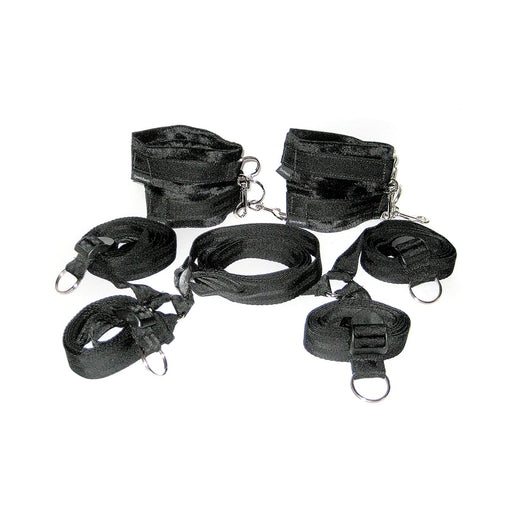View full detailsWith four wrist and ankle restaints attached to nylon straps, this set is sure to produce a happy ending. Now includes a Soft Blindfold and it's pu...