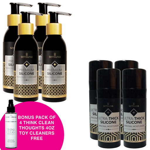 Contains 4 bottles each of Premium Silicone Personal Lubricant 4.2 oz. and Ultra-Thick Silicone Personal Moisturizer 4.2 oz.FREE BONUS: Contains 4 ...