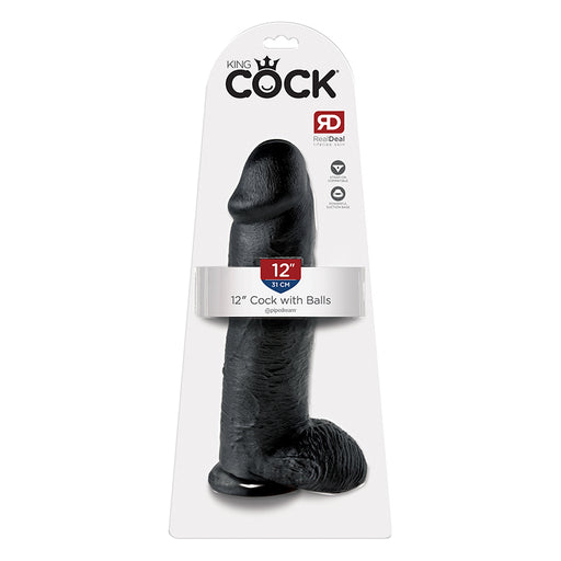Realistic dildo with balls features a suction cup base for hands free fun. Measures 13 in. long 2.75 in. wide.