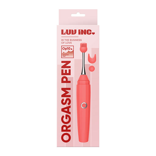 Luv Inc Op10 Orgasm Pen Rechargeable Pinpoint Vibrator with 3 Attachments Coral