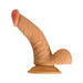 Flexible pigmented realistic erection is perfect for anal or vaginal satisfaction. Flexible curved dong is 6.5 in. long with balls. Lube included. Three AA batteries (not included).