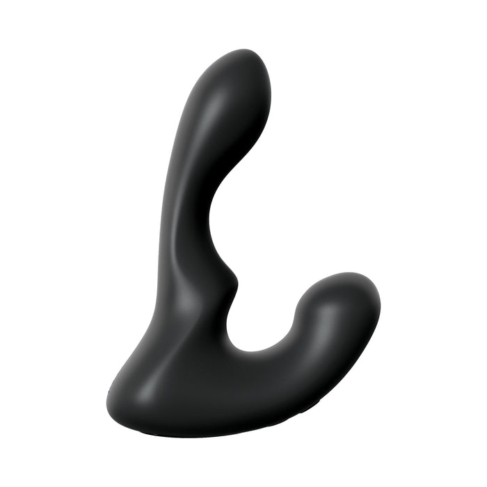 Prostate massager includes a bullet with 9 functions of vibration, pulsation and escalation. The ergonomic design allows for extended wear during solo sessions or partner play. Measures 5.5 in. long 4.2 in. insertable, 4.1 in. wide. USB rechargeable.