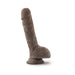 Realistic flexible dildo with balls has a soft Sensa Feel exterior and a firm interior. Features a suction cup for hands-free fun. Harness compatible. Fragrance free. Measures 9 in. long, 7 in. insertable, 1.75 in. wide.