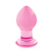 New Novelties Crystal Small Pink Glass Butt Plug. The entire Crystal collection is made of 100% hand blown, premium Borosilicate glass. These items are of the highest quality, and represent the most vibrant and durable glass products available today. Crystal items can be heated/cooled to personal taste. No matter the size, our Crystal glass plugs are a stunning display of erotic art. This beautiful design is available in 3 different sizes, with 2 color options available per size. Each sold separately. The small Crystal premium glass plugs are 2.5 inches tall. Butt plug dimensions 2.5 inches by 1.37 inches. Material Glass.