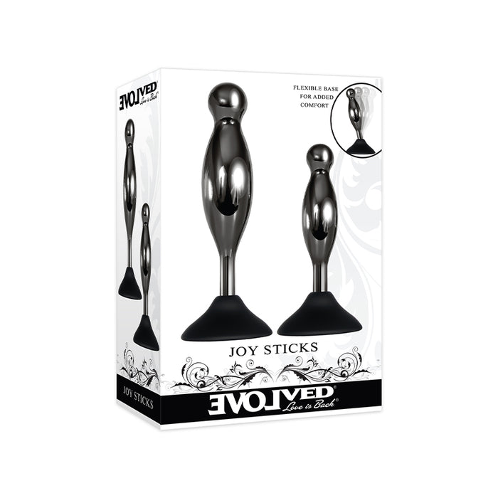 Evolved Joy Sticks 2-Piece Metal Anal Plug With Suction Cup Base Set Black