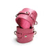 These soft and sturdy KinkLab Pink Bound Leather Ankle Cuffs don't buckle; they wrap around the ankle, making them simple and quick to handle.