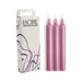 Experience the delicious tension of temperature play with these sensual drip candles. Made of body-safe paraffin wax, the same type used in skin-soothing salon treatments. Hold the candle at an angle to control the flow of the wax and drizzle warm pleasure onto your lover’s body. Massage in and leave on until it cools. Once dried, easily peels off. Candles should be a minimum of 36" from the skin to allow wax to cool before contact.