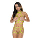 Magic Silk Strap Tease Cupless Choker Bra & Open Cage Short Yellow L/XL