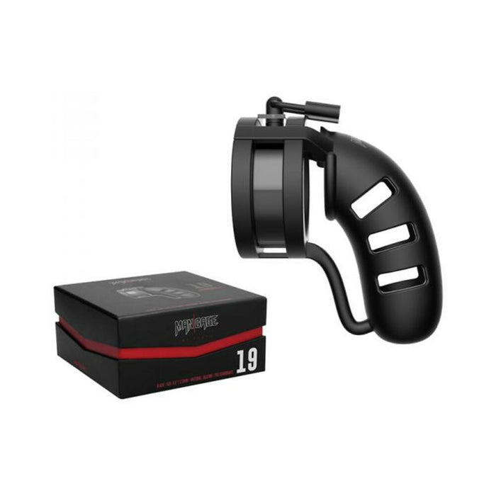 Man Cage Model 19 - Chastity - 4.5" - Silicone Cage Ballsplitter - Black