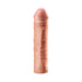 The Mega 3 in. Extension is a customizable extension that can be easily trimmed at the base for a perfect fit. It's super-stretchy to accommodate most sizes and snug enough to help you last longer. Your partner will enjoy deeper penetration with the 1 in. extension at the tip, while the ultra-lifelike shaft makes you 66% thicker to offer a fuller feeling and exceptional climax. The super-soft Fanta Flesh material feels like a second skin, only better. Includes lube and toy cleaner. Measures 9 in. by 2 in., 1.25 in. inner diameter.