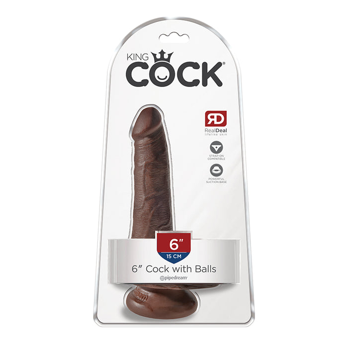 Pipedream King Cock 6 in. Cock With Balls Realistic Suction Cup Dildo Brown