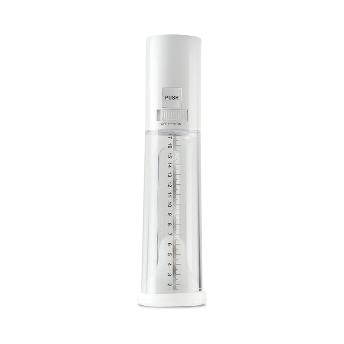 A handy magnifying strip is on the front of the tube, giving you a clear readout and a closer look at your new size. When you have reached your desired size, simply push the quick release button above the power switch to instantly relieve the pressure. To prolong ejaculation, slide the included enhancement ring over your shaft until it's nice and snug. The tight squeeze will prolong cumming, help maintain your erection and extend the fun. When you are done, restore your pump to like new quality with Pipedream Toy Cleaner and warm water.
