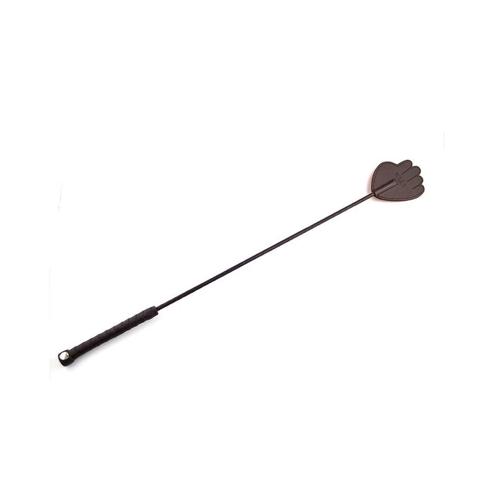 Bondage crop with a hand-shaped spanking flap. Has a leather wrapped handle and hand braided shaft. Measures 23.5 in. by 3.1 in.