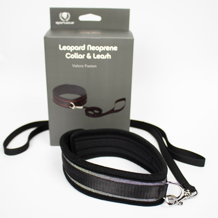 Soft cushioned collar with silver leopard pattern. Velcro closure