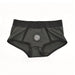 Designed for an active fit all day and all night the Em.Ex Fit Harness™ allows you to be ready for a pleasure-packed experience. The interior fabric panels secure toys and provide support during play while the soft fabric provides a comfortable stretch. With its durable elastic waistband and nitrile (rubber) “O” Ring you can keep all your favorite accessories firmly in place. Two bullet pockets give the option of added stimulation during play or on the go. This harness comes in a boxer brief style for added comfort and wearability.