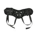 Strap-on harness made of plush black fabric features 4-way adjustable straps that fit sizes 12 to 30 and adjusts up to 72 in. hips. Includes interchangeable rubber O-rings: 1.5 in., 1.75 in. and 2 in. Accommodates dildos with a flared base (dildo not included). Includes channel for bullet vibrator (sold separately). Machine washable.