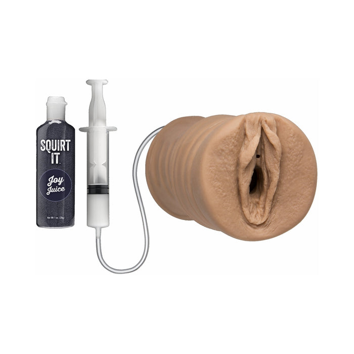 Made of lifelike Ultraskyn material, this masturbator squirts on command thanks to an easy-to-fill syringe and a 1 fl. oz. bottle of Caramel Joy Juice. Squirt It also features a tight pleasure tunnel with plush internal ribbing, for even more pleasure. Squeeze the attached squirt syringe to flood the Squirt It and yourself with sweet pussy juice. Open-ended design makes cleanup a breeze.