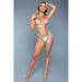 2-piece wide fishnet bodysuit with matching thigh-high stockings. Thong not included. Hand wash only. Do not bleach. Do not tumble dry. Do not iron. Do not dry clean. Box packaging.