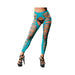 Turquoise crotchless leggings with side straps Can also be worn as a crop top One size fits most 92% Nylon 8% Spandex Hand wash Drip dry @vday2020-70