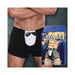 Boxer shorts feature a white inset with button details and a satin bow. One size fits most.
